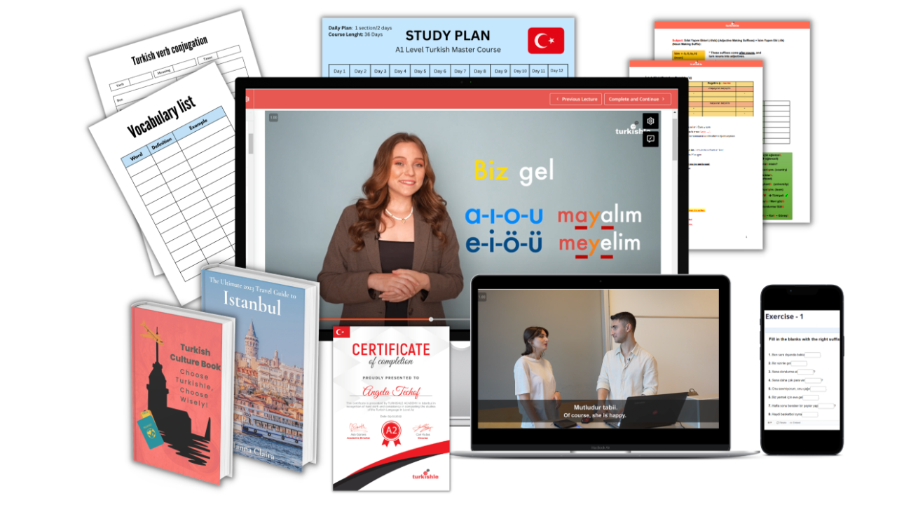Get crystal-clear lessons with high-quality visuals that break down complex grammar into manageable pieces. These video lessons will help you understand Turkish grammar in a easy and fun way.